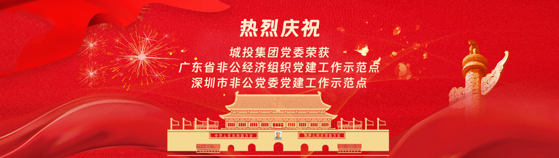 在上級黨委的正確領導下,在城投集團的大力支持下,集團黨委緊緊圍繞企業發展戰略,將黨建引領核心貫穿始終,以五心工程(即思政建設核心工程、經營發展中心工程、企業文化向心工程、黨建品牌匠心工程、服務基層愛心工程)為抓手,大膽探索,勇于突破和創新,不斷形成城投黨建特色,有效輸出城投實踐經驗,充分發揮紅色引擎作用,先后獲得深圳市非公黨委黨建工作示范點深圳市兩新組織黨建工作示范點深圳市文明單位、深圳市先進基層黨組織、廣東省非公有制經濟領域黨建工作示范點等榮譽稱號。